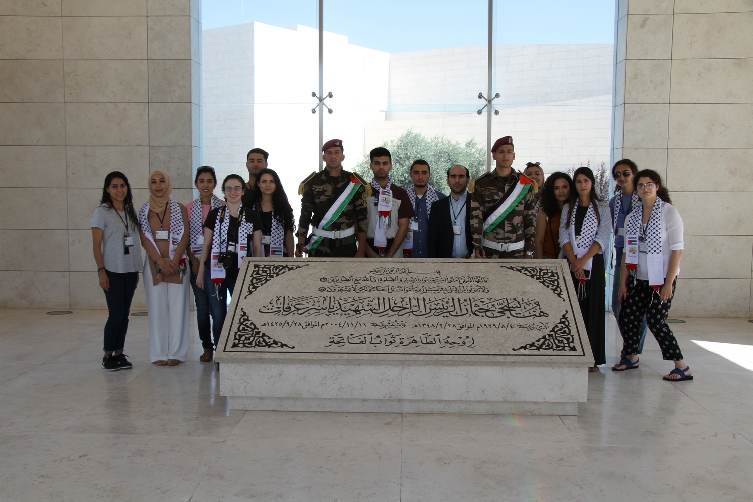Today was our first complete day in Palestine. And what a day it was. It started with a powerful visit to Yasser Arafat’s tomb in Ramallah; one of the most important Palestinian leaders and a man that shaped the course of Palestinian history. We then went to Yasser Arafat’s museum, which opened in 2017. The museum showcases Palestinian history from early 20th century until 2004, the year when Arafat passed away. It then led us to the siege area, where Arafat met, slept, ate during the three years when he was under siege by Israel. It was really impactful to see the meeting room where important decisions were made and history was written. To conclude an already productive morning, we met with Dr. Nasser Al-Qudwa, Yasser Arafat’s nephew, member of Fatah and former UN representative. We were able to ask him questions about the museum, the challenges and successes that they’ve had establishing it and the footprint it is leaving in the cultural landscape of Palestine. We all left with a deeper knowledge of the Palestinian history…And to think it was only noon